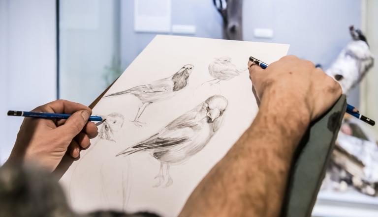 Der Kunstkurs „Naturstudium - Zeichnen und Malen im Naturkundemuseum Potsdam“ lädt Erwachsene vom 11. Oktober bis zum 29. November an sechs Dienstagabenden dazu ein, unter Anleitung des Diplom-Kunsterziehers Lothar Klank kreativ zu werden. Bis zu 12 Teilnehmende können sich jeweils von 17 bis 18.30 Uhr im bereits geschlossenen Museum mit viel Ruhe den Ausstellungsstücken künstlerisch mit Bleistift, Rötel, Kreide, Wachs oder auch Aquarellfarbe nähern. Die verschiedenen Tiere und Präparate sowie Felle, Federn oder Skelette regen zum künstlerischen Ausdruck an. Die Termine des 1. Kurses finden am 11. Oktober, 18. Oktober, 8. November, 15. November, 22. November und 29. November statt. Im Januar 2023 sowie ab April 2023 wird der Kurs mit jeweils sieben Terminen fortgeführt. Teilnehmen können Personen ab 16 Jahren; die Kosten betragen 55 Euro/ ermäßigt 47,80 Euro zzgl. 3 Euro Eintritt pro Person und Termin im Museum. Mit einer Jahreskarte (18 Euro) entfällt der Eintritt. Eine Anmeldung ist über die VHS möglich. Ein Stuhl wird vom Museum bereitgestellt. Material wie Stifte, Tusche oder Kreide sowie ein A4 oder A3 Block ist von den Teilnehmenden mitzubringen.