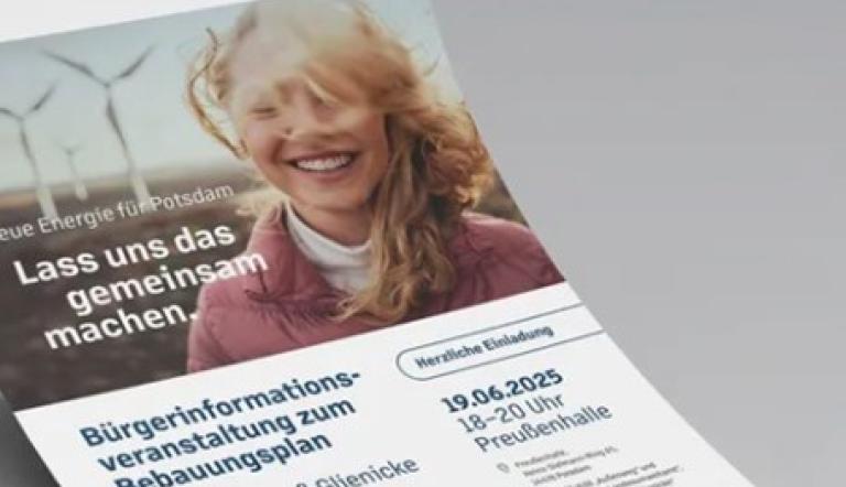Die Bürgerinnen und Bürger aus Groß Glienicke sowie aus der angrenzenden Gemeinde Dallgow-Döberitz und dem Bezirk Spandau von Berlin sind herzlich eingeladen, am Donnerstag, 19. Juni 2025, um 18 Uhr in der Preußenhalle (Heinz-Sielmann-Ring 65, 14476 Potsdam, OT Groß Glienicke) mit den Vertreterinnen und Vertretern des Bereichs Stadtplanung und der EWP zum Planverfahren und zu dem Windprojekt ins Gespräch zu kommen. Der kontinuierliche Austausch mit den Bürgerinnen und Bürgern soll das Bebauungsplanverfahren von Beginn an begleiten. Nach aktueller Zeitplanung wird die planungsrechtlich vorgeschriebene frühzeitige Beteiligung der Öffentlichkeit sowie die Beteiligung der Behörden und Träger öffentlicher Belange voraussichtlich gegen Ende des Jahres 2025 erfolgen.
