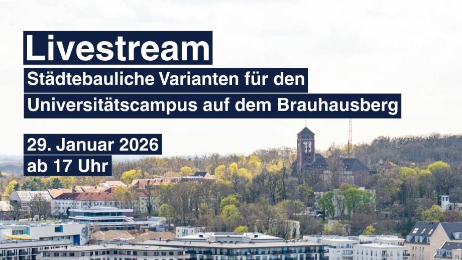 Auf dem Brauhausberg in Potsdam soll ein neuer Universitätscampus entstehen. In einer öffentlichen Veranstaltung werden erstmals Varianten für den Städtebau präsentiert. Dazu begrüßt der Beigeordnete für Stadtentwicklung, Bauen, Wirtschaft und Umwelt, Bernd Rubelt, gemeinsam mit dem Kanzler der Universität Potsdam, Hendrik Woithe. Das Planungsbüro Hilmer Sattler Architekten stellt drei Varianten des Städtebaus für den zukünftigen Campus vor und nimmt Feedback dazu auf. Anwesend sein werden auch Vertreterinnen und Vertreter der Hasso Plattner Foundation, der Eigentümer sowie Fachleute der Universität und der Landeshauptstadt Potsdam.