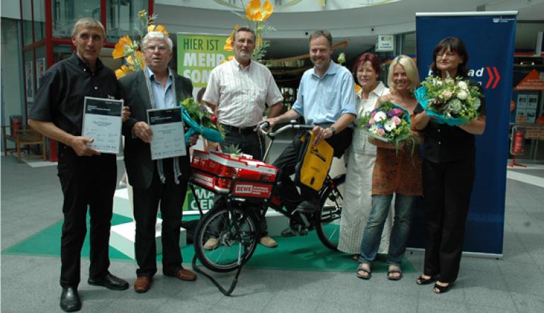 Bei einer Veranstaltung im Markt-Center wurden am23. Juni drei Geschäfte für Ihr Engagement für ihre fahrradfahrende Kundschaft ausgezeichnet. Sie hatten sich unter acht Bewerbern besonders hervorgehoben. Da aber alle Teilnehmer am Wettbewerb gute Maßnahmen und Ideen eingereicht hatten, erhalten alle eine Anerkennung.
