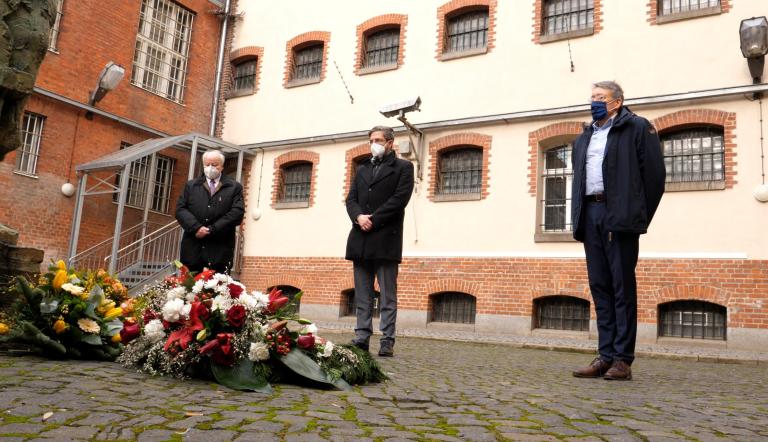 Zum 76. Jahrestag der Befreiung des Konzentrations- und Vernichtungslager Auschwitz-Birkenau gedachte die Landeshauptstadt mit einem stillen Gedenken in der Gedenkstätte Lindenstraße und auf dem Willi-Frohwein-Platz
